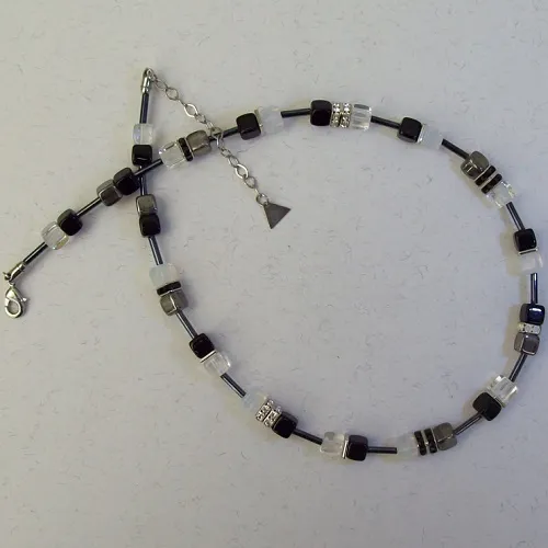 Fabricado com pedras cúbicas, procedentes da República Theca, mistura elementos dando um aspecto jovial e leve à bijuteria.