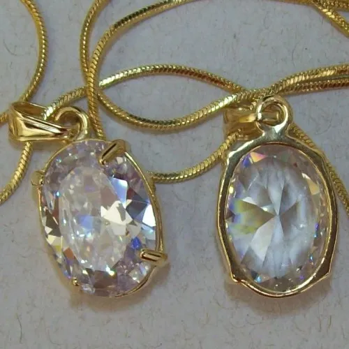 O colar com pedra tcheca é cravado em caixa fundida junto à argola.