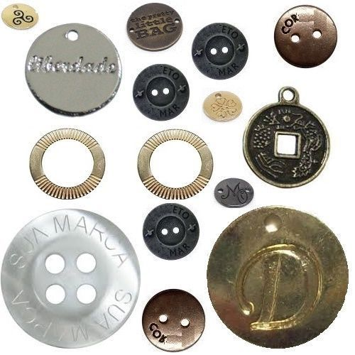 etiqueta fundição zamac redonda personalizada com furos. 1000 peças. Envio 28 dias úteis. Descrição: